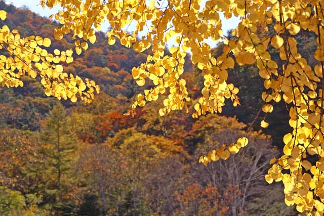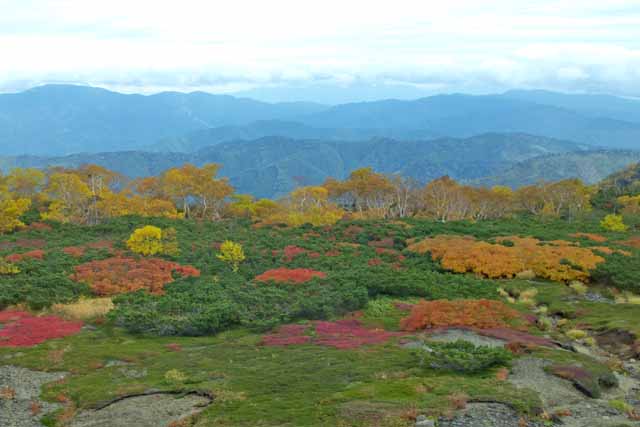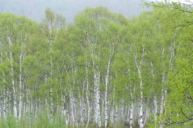 ススキ ダケカンバとナナカマド ツツジ